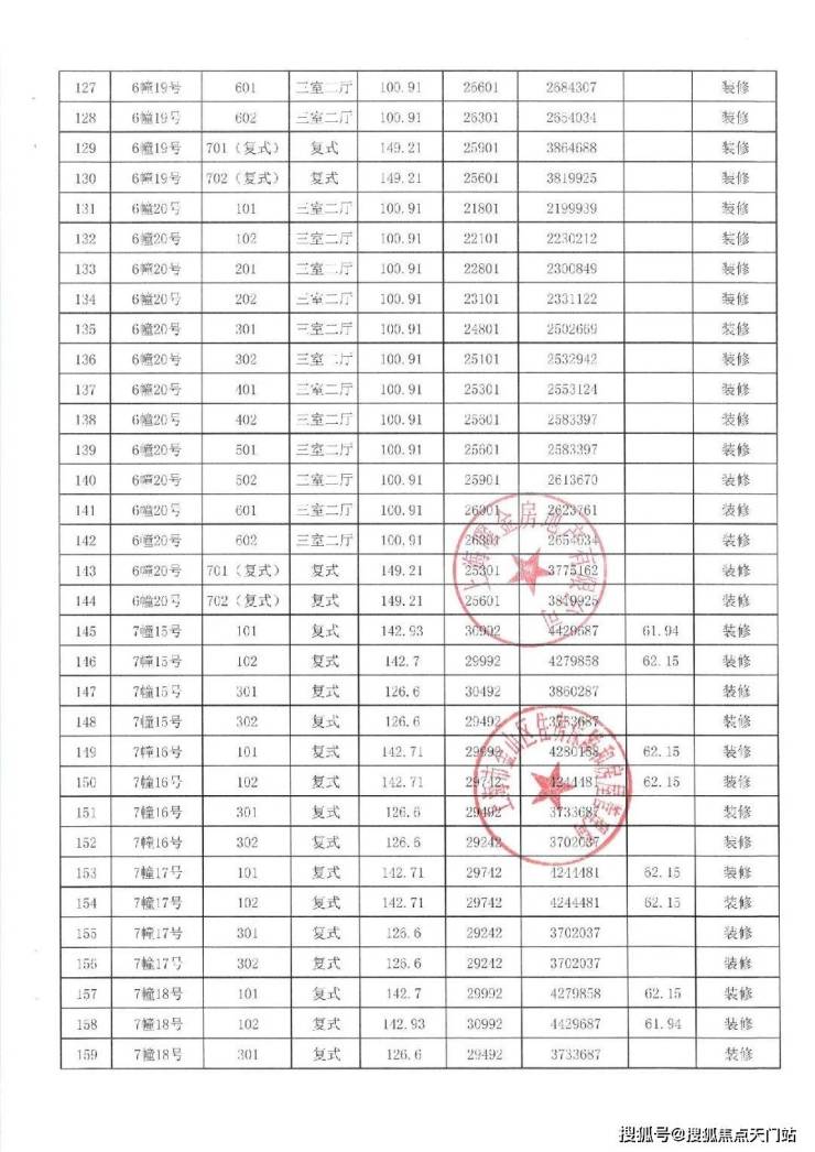 项目一房一价表