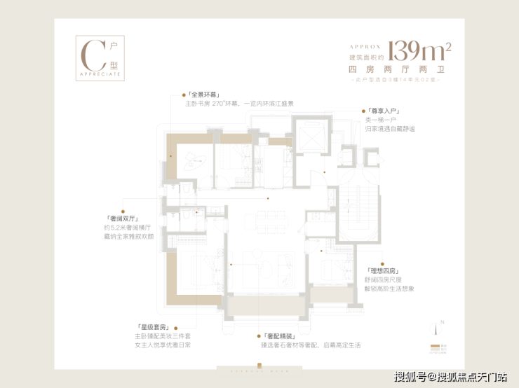 项目小高层全系标配全屋飘窗+类一梯一户电梯厅,并将人性化考量融入每一处细节,去过道化设计,最大化拓展实用尺度,115㎡户型赠送面积约11㎡,实得率约93%;139㎡户型赠送约13.4㎡,实得率高达95%。139㎡户型更采用约5.2米奢阔横厅、LDKB一体化设计,边套主卧与书房双270°环幕视野。灵活X空间留白,可依居者志趣随心定义,让空间适配生活,让家真正成为贴合个人心意的专属天地