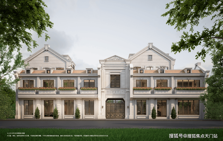 高层与洋房承袭外滩经典建筑的“横纵三段式”结构,由下至上的力量感,树立起极具辨识度的优雅姿态。别墅则甄取华盛里石库门的过街楼、老虎窗、立面腰线等元素,以大面积石材与金属细节点缀,实现历史符号的当代奢华表达。