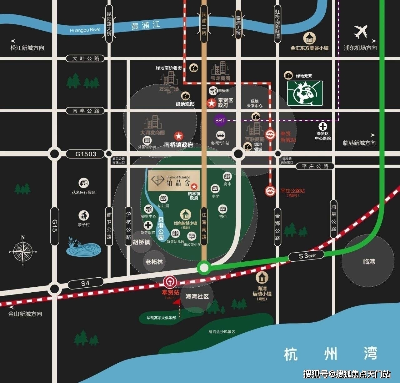 南桥南,上海市奉贤区江海南路与新塘路交汇处,自带约2万方区域型商业中心,绿色智慧小镇宜居新城大规划,项目约5km的出行半径覆盖南侨
