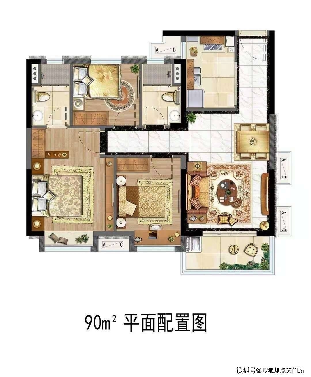 别墅建面约120㎡联排户型公寓建面约89-96㎡三房两厅两卫