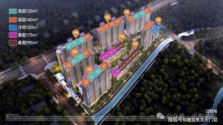 2栋4-6层叠墅:建面约176㎡-200㎡(低密静谧,私享水岸景观)
