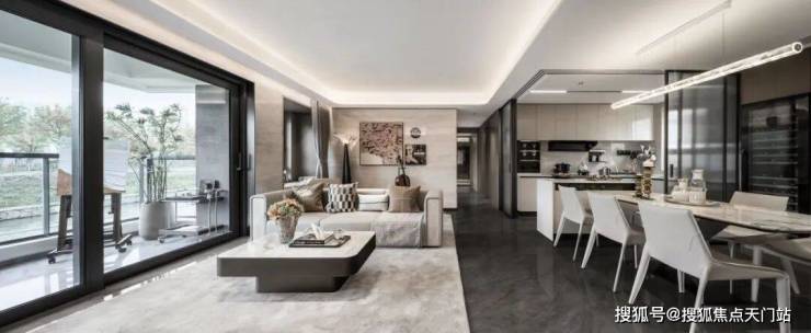 招商时代乐章艺术化的再造传统餐厨空间, 可开可合的岛台设计 ,结合艺术玻璃移门,在提升空间灵动性的同时,也激发出餐厨空间生活的多样性。