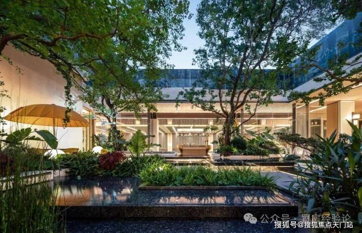 整个会所巧妙利用建筑高差,营造立体多维的景观层次,打破沉闷压抑感,使下沉式会所与庭院景观自然衔接,实现社交空间与生态场景的无界融合。