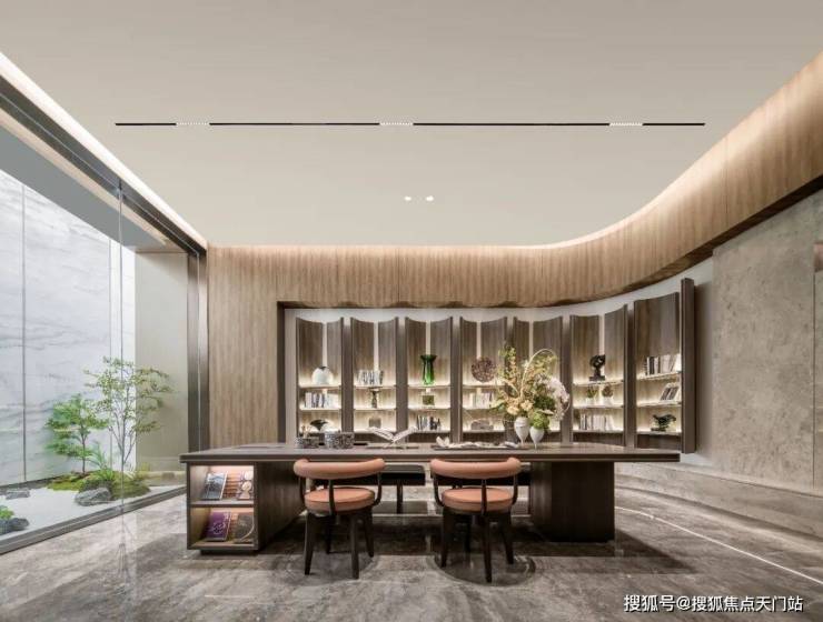 这是一方兼得生活感与烟火气的归家中转站,由真实生活场景构建的归家前庭,让业主可以在归家路上随手取拿快递外卖,并经由游廊步入水院,在揽境客厅坐下来喝杯咖啡,让业主不仅是空间的观赏者,更是参与者与创造者。