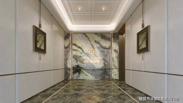 电梯厅融合 梵高印象岩板 与超白洞石大面积的铺装,彰显出了细腻雅致!
