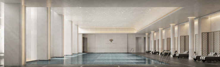 约2000㎡地下会所内含 璀璨星空顶泳池、私宴厅、室内高端健身器材(沃特罗伦或同等档次品牌)甚至 高尔夫场所(高尔夫尊或同等档次品牌)。