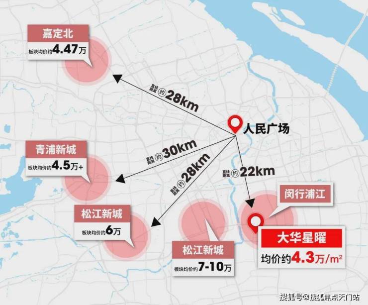 同样距离、甚至一些更远的区域,例如嘉定北、青浦新城以及松江新城等区域的价值,普遍要卖到4.5万/㎡以上,松江新城的价格更是达到了6万均价。