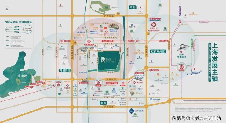 因为区位靠近大虹桥核心区,项目能便捷享受大虹桥丰盛的商业、公共服务设施。就拿17号线徐盈路站的天空万科广场来说,从项目出发,自驾非常便捷。或者坐地铁3站也能直达。此外,开市客和山姆会员店两大会员制超市也离项目不远。