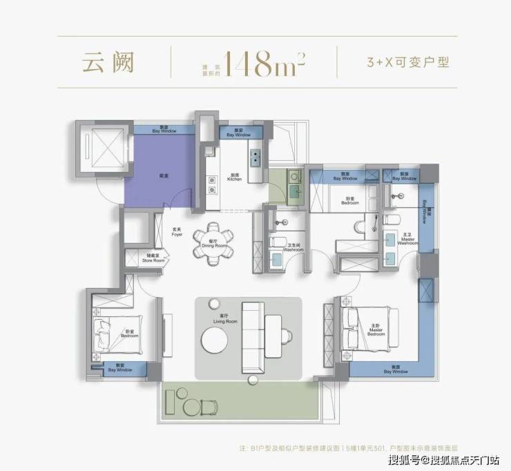 建面约148㎡3+X房2厅2卫