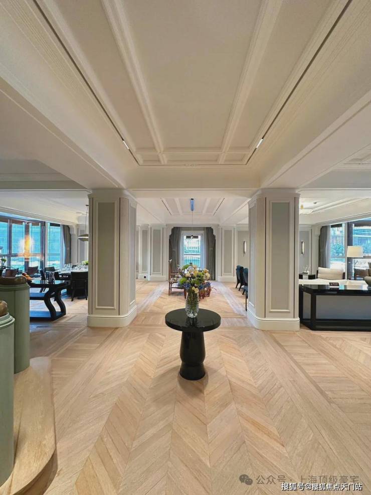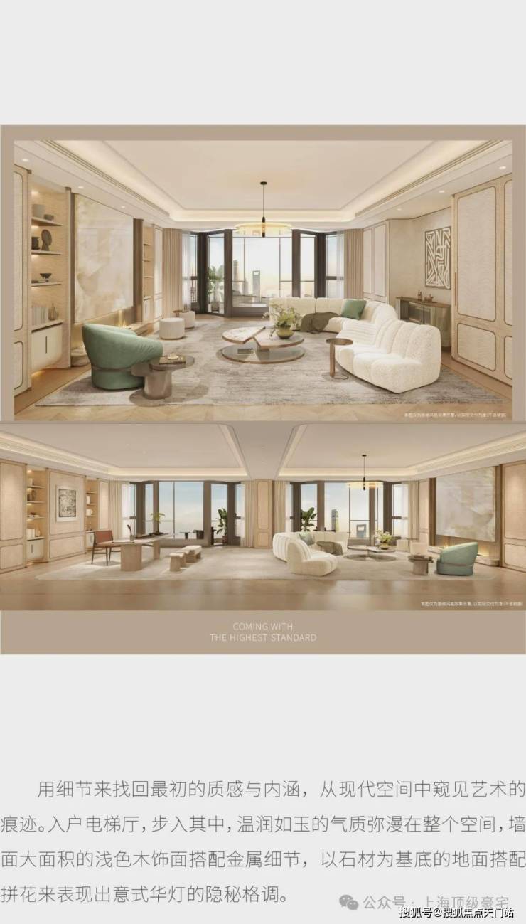 🚁建筑外立面与外滩华尔道夫系出同门,充满未来主义又自带超级网红IP的现代Artdeco风格。底层架空打造了水景大堂,南侧塔楼顶部设计了一座停机坪,这是上海首个也是目前唯一设计顶楼停机坪的住宅。“170米高空私人飞机入户”,匹配多财多亿的富豪阶层。