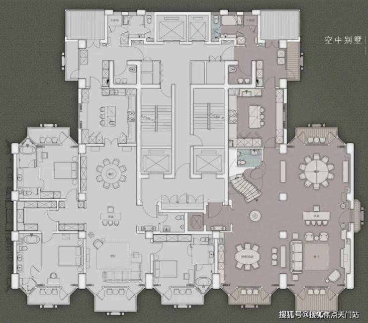 住宅部分全部大平层(复式)设计,单套面积约370-1500㎡,全部精装交付。