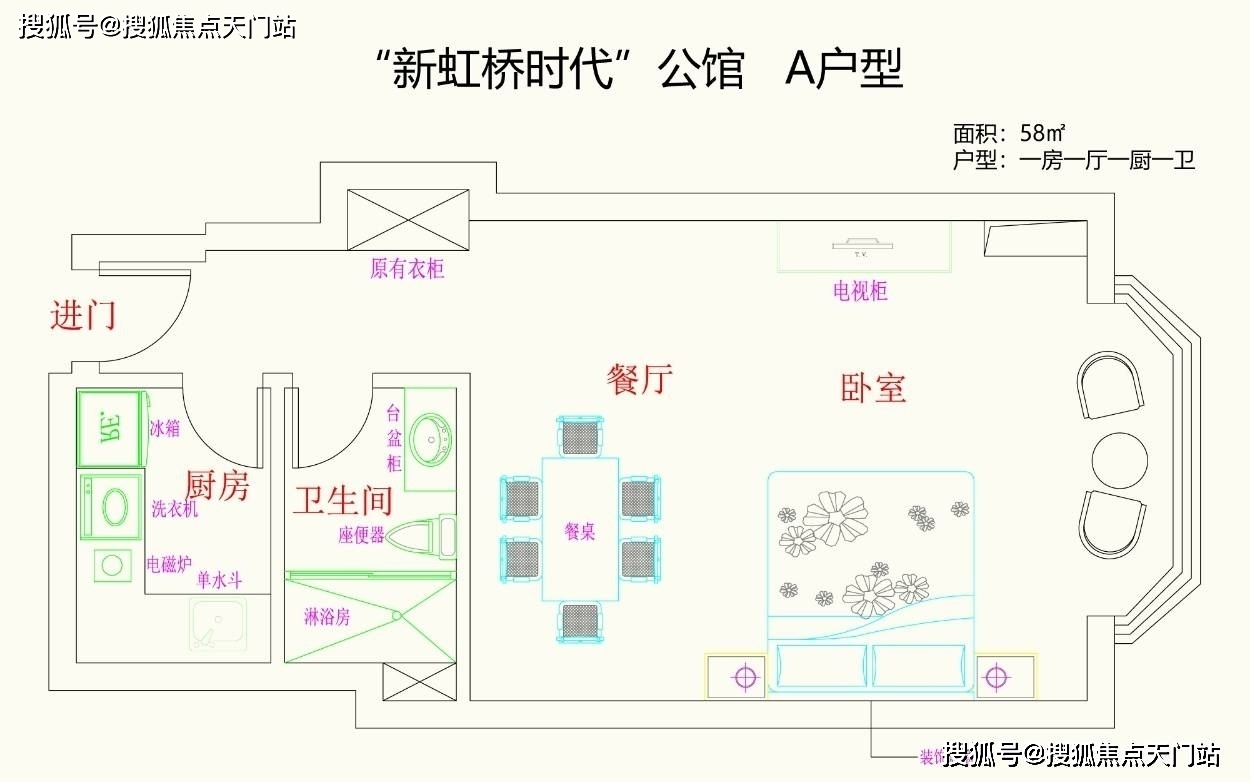 主推建面:58㎡,61平