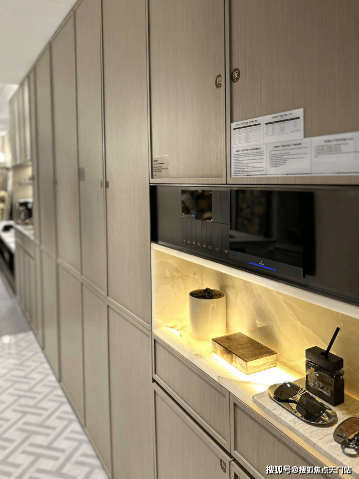 就连冰箱也是交付的。在百平米3房的户型中安排了东芝的内嵌无霜冰箱、大户型选用顶豪的嘉格纳冰箱。