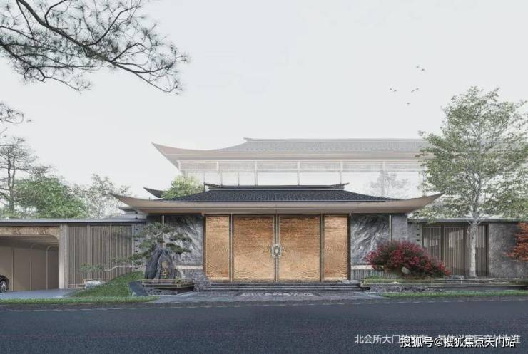 项目立面以多种新中式元素构筑东方建筑美学,横向采用大面玻璃幕墙,保障隐私的同时,尽可能的增大建筑内外场景对话。
