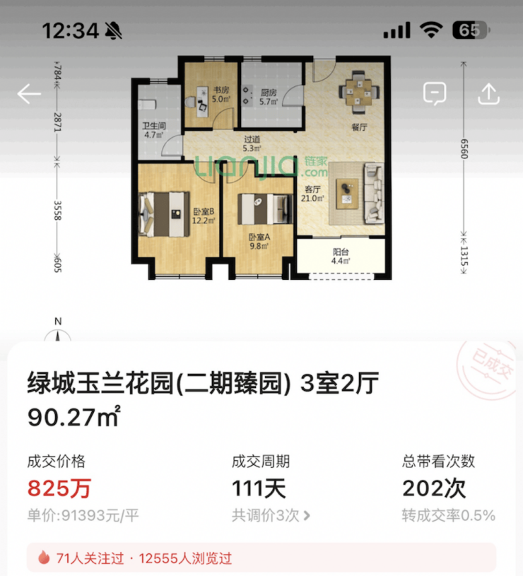 二手市场价格可期,旁边绿城二期今年成交一套90m²小户型,单价9.1万,比保利天奕前期小户型最贵单价还贵出近1万/m²!
