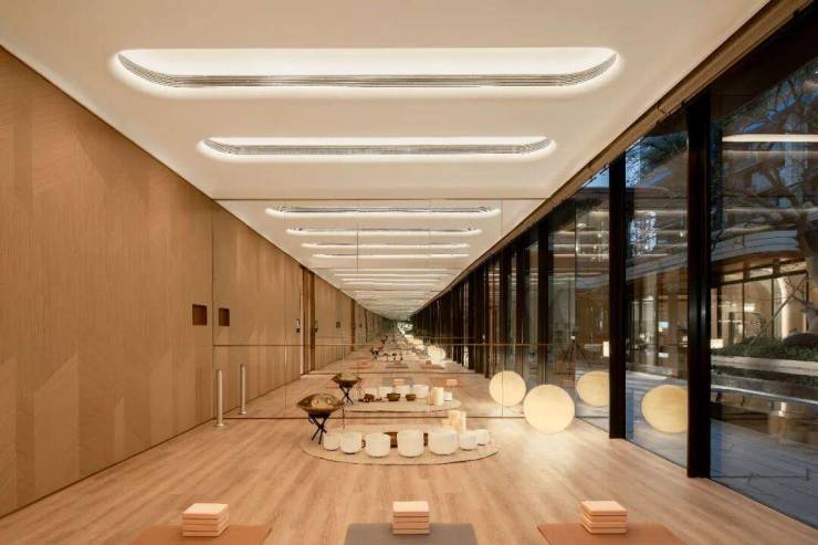瑜伽室内嵌七组定制音钵,匹配当下音疗的疗愈趋势,通过多元化、国际化的功能带给业主更便捷、更丰富、更松弛的日常体验。