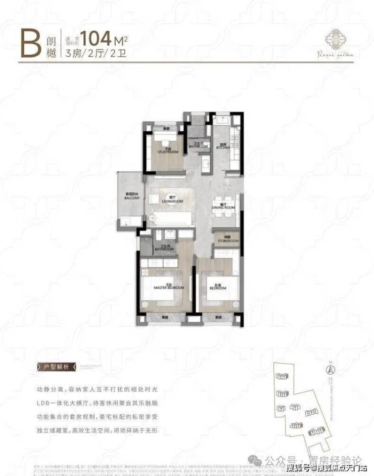 建面约104㎡王炸3房户型