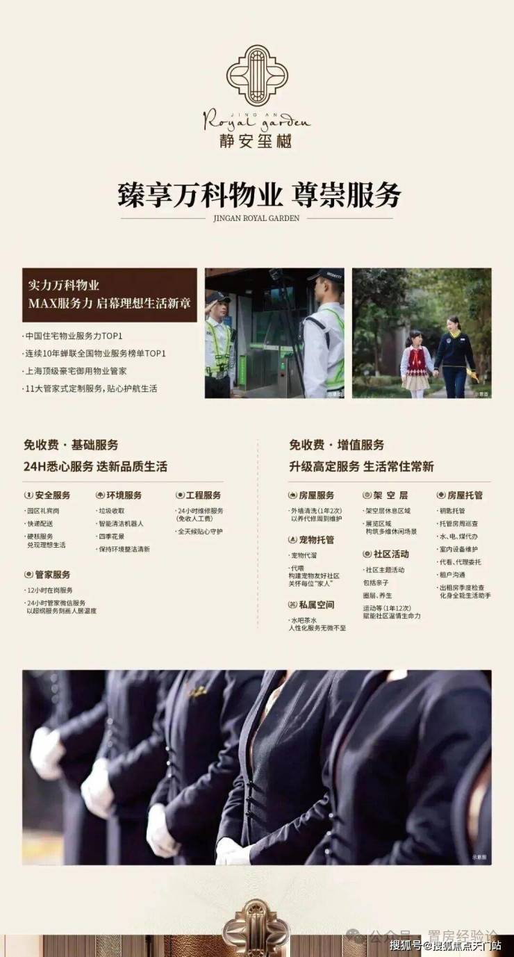 未来「静安玺樾」将由万科物业管理,拥有多年豪宅管理经验的万科豪宅级物业服务体系,蝉联行业10年top1,在提供社区日常维护、安保以及管家服务的基础上,还将提供包括外墙清洗、宠物托管、房屋托管、社区活动等增值服务!交付才是体现社区品质的开始!