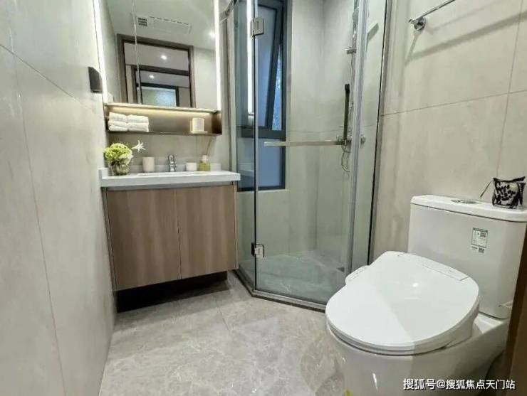 比如,高颜值时尚立面。项目立面主体造型为简洁框架设计,削弱板楼带来的沉重感,营造轻松的居住氛围。以米白色、深灰色作为整体主色调,香槟色点缀,给人以耳目一新的感觉。