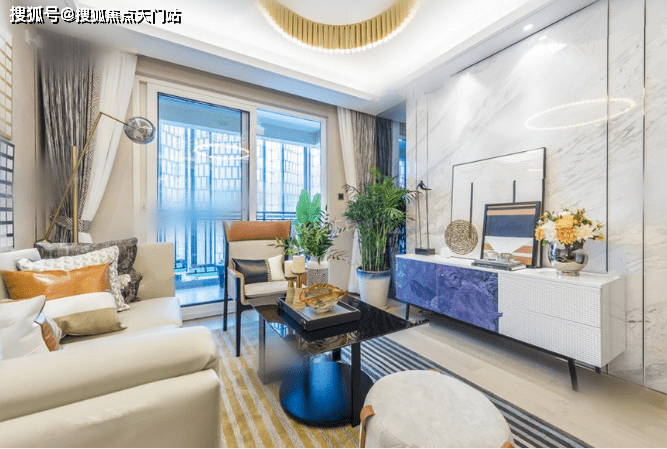 项目建筑立面整体以粉蓝色点缀,打 造为海岛度假风,整体建筑风格为现代简约风格。全屋地面以仿木纹瓷砖铺设,采用断桥铝型材,优化保温、隔热、抗潮及隔音等功效,甑选方太、摩恩、科勒、西 蒙、欧普等一线品牌定制装修,匠心设计,带来舒适享受。
