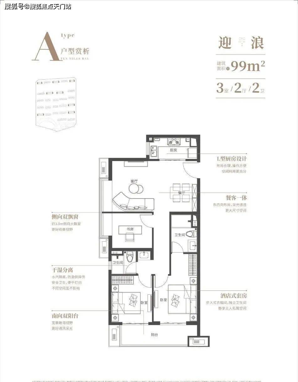 【高层99平】约6.1m大宽面双阳台,近6m客厅观海飘窗,奢享270o三面海景,主卧套房设计,N+1灵动空间!