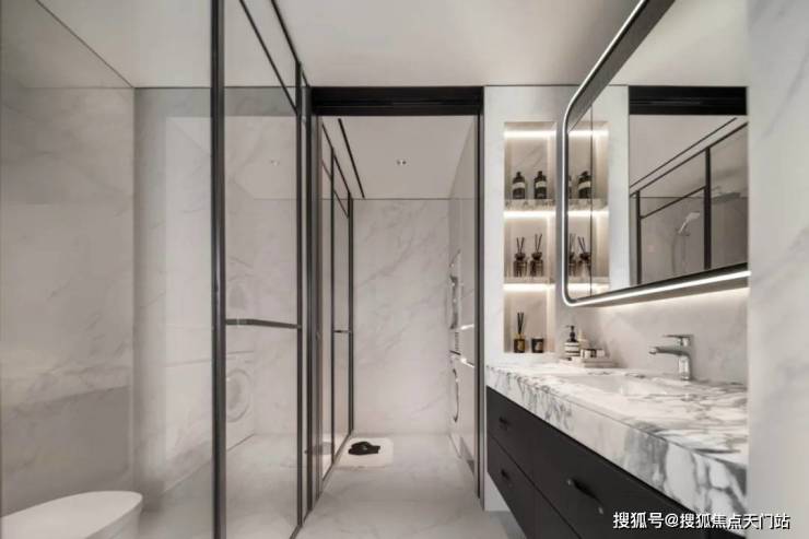 公卫 打造独特的 四分离系统 , 实现独立洗漱台、卫生间、淋浴间、洗衣区互不打扰,将酒店化体验引入住宅。
