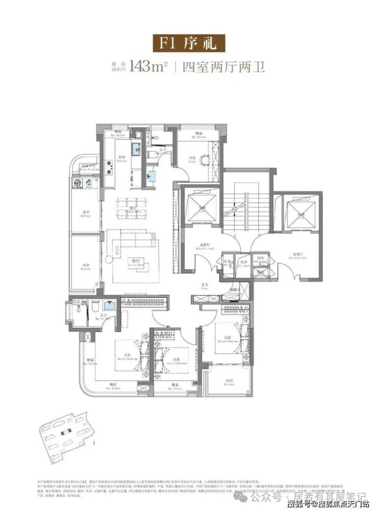 最关键的是,建面约143㎡的产品全系两梯两户、类一梯一户的设计,电梯出来有一个独立的电梯厅,可以作为业主生活的延伸。