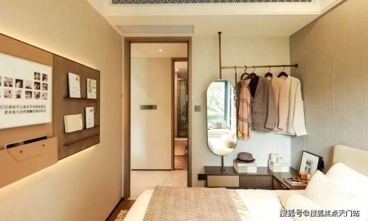 每一间卧房皆设飘窗,为每一颗热爱生活的心,预留一方浪漫天地。主卧参考酒店式套房,拥有衣帽间和独立卫浴间,尊重日常生活的私密感。与此同时,卫浴间的飘窗附设壁龛,可用于收纳,增加实用性。