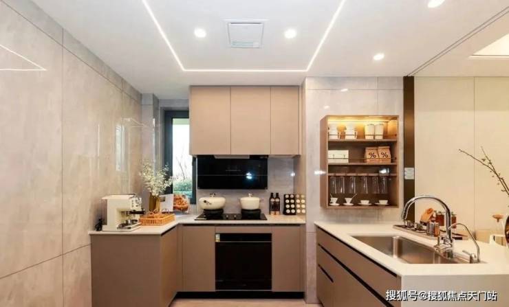 半开放式厨房,打破了传统的全封闭设计,与餐厅无界相通,面朝客厅与阳台,形成S型流畅生活动线,也打破了居家生活的空间隔阂,无形之间,增强家人之间在日常时刻的交流与互动。