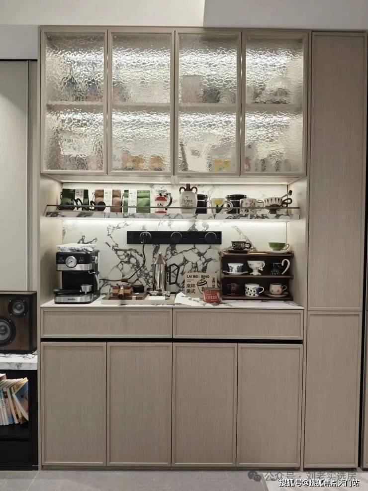 大量的隐藏收纳柜,让业主随心所欲的大量囤货、购买心仪之物,并且能保证居住空间的整洁、舒适。 本次还增加了非常实用的零食柜和餐边柜, 未来业主在这里可以作为自己的一个日咖夜酒区域。