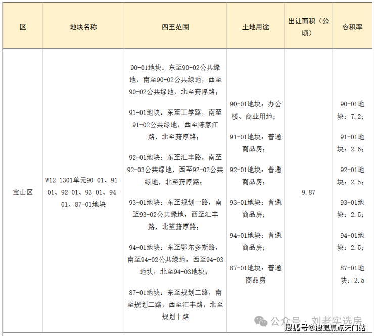 前不久,宝山区W12-1301单元90-01、91-01、92-01、93-01、94-01、87-01地块正式出让。