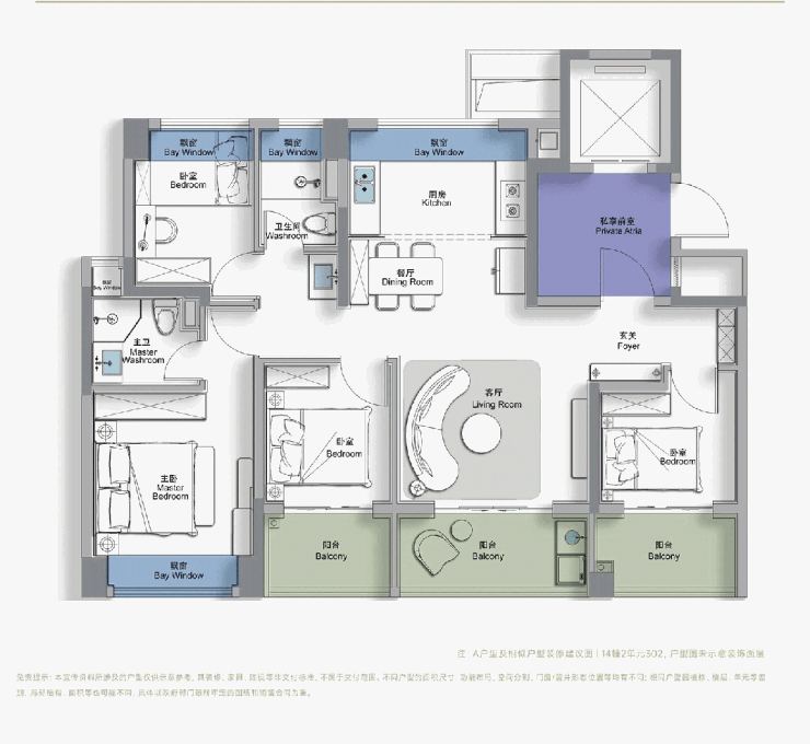 尺度感上: 这是新政后松江板块首个 四开间朝南、且不封阳台的三阳台 户型。