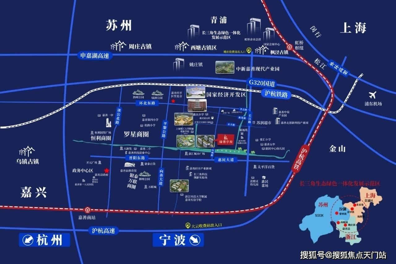 更有通苏嘉甬高铁高速铁路、沪杭高速,申嘉湖高速等多条高速环绕、老沪杭铁路提升工程,形成“2211”轨道交通网络,与周边快速通达