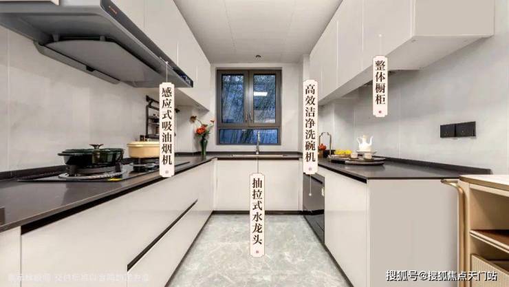 臻选 方太(或同档次品牌)洗碗机、燃气灶等,安全耐用,抽拉式水龙头,轻松冲洗水槽角落,接入3M、 霍尼韦尔(或同档次品牌)净水机,保障全家饮用水的健康安全
