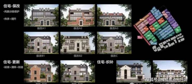 社区内部尊重原有肌理,静安里妥善留存更新原有不同风格建筑,通过保护修缮 、保留改造 、更新改建 、织补新建 四大更新手法,打造了10种建筑立面风格 ,让各个时代建筑和谐共存