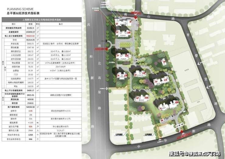 而北侧靠近南山路一侧还规划一幢最高6层的养老设施用房。在小区南北两侧的中华新路和南山路分别设有机动车出入口。