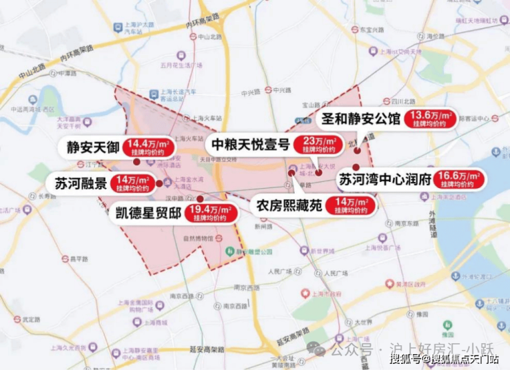 再来看板块内的标杆住宅,中粮天悦壹号挂牌均价23万+,凯德星贸邸19.4万+,苏河湾中心润府16.6万+,这片无数高净值人群聚集的土地,早已形成高端住宅的圈层氛围!
