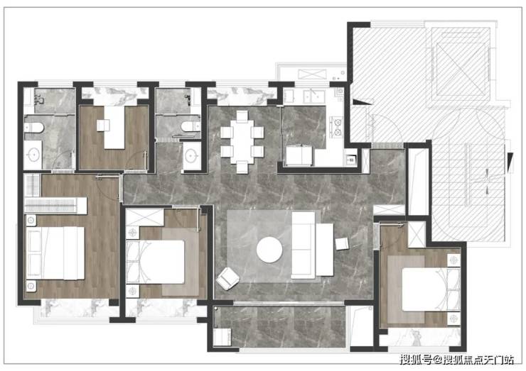 对于二人情侣,是安放衣物与家庭办公的温馨空间,衣帽间、书房、学习,充分满足二人生活的多元生活。面对三口之家,可以从婴儿房进阶为儿童房,伴随年龄结构的变化,而不断调整自己的定位。