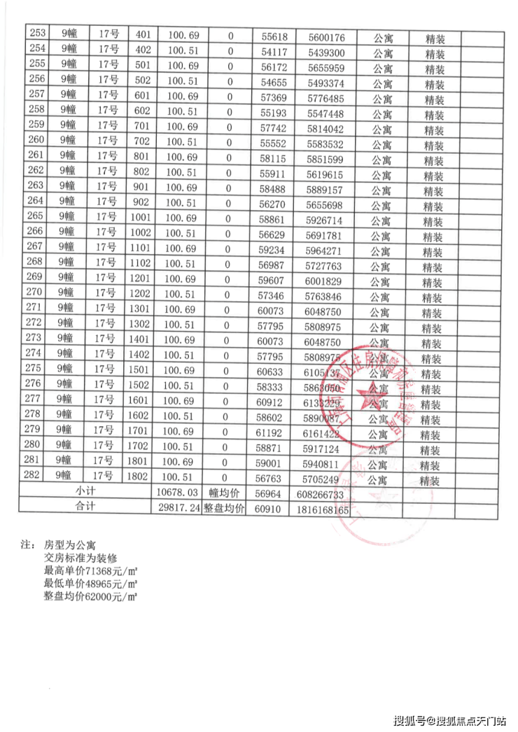 一房一价表: