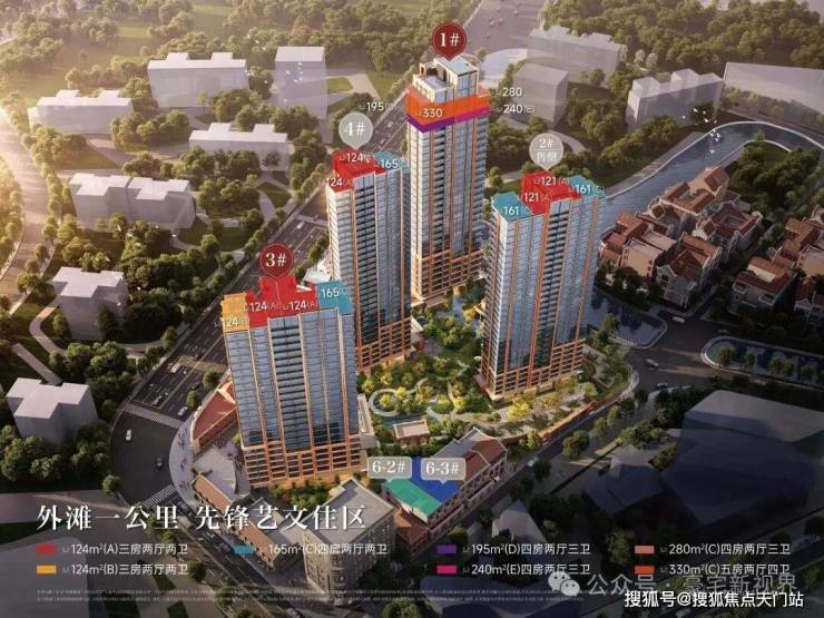 楼栋规划:项目规划了4栋24-32层的高层住宅和1栋3层的风貌建筑。