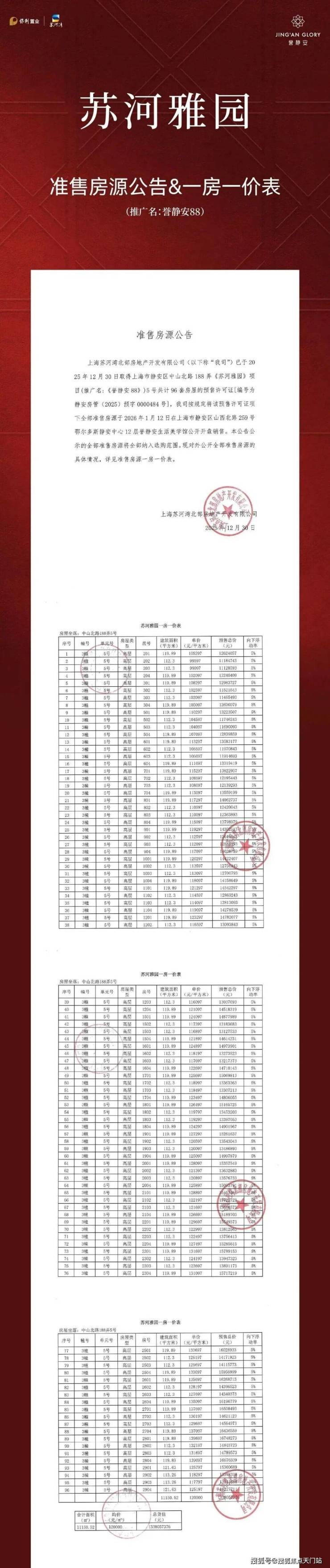 节点性暴击:「誉静安」 96 套苏河湾旗舰超配大宅,建面约 143 ㎡ 4 房,高规格精装交付,样板间已开放 。