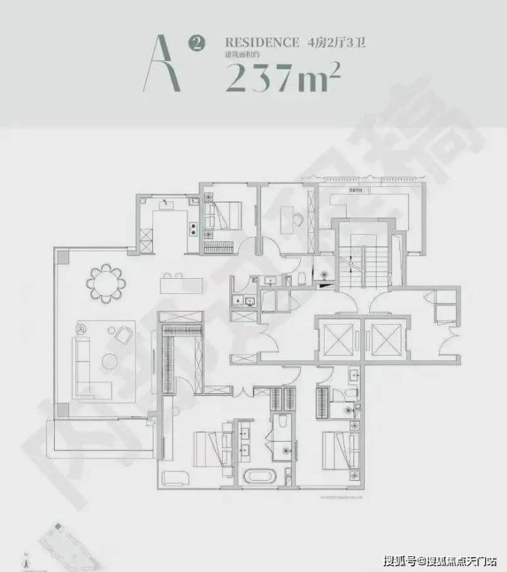 建面约86m²3房2厅2卫: