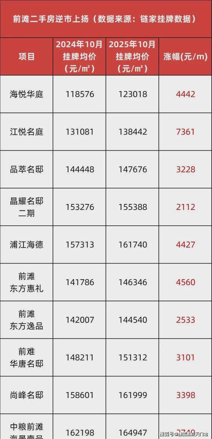 前滩滨江,正持续吸引全球眼光与资本,高净值人群正以实际行动在此“投票”。在2025年,整个前滩滨江范围里,二手房逆势上扬,数据显示,成交量已经突破200套,仅次于2020年最高点!就在11月,前滩东方逸品成交1套房源,成交单价来到了14.14万,同比上涨!