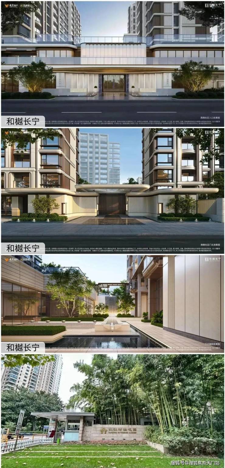 和樾长宁的迭代首先是公区发力,我们可以对比下同板块3个关注度较高小区:和樾长宁、西郊紫薇花园、仁恒河滨花园(最新挂牌价也有12万+)的公区配置。