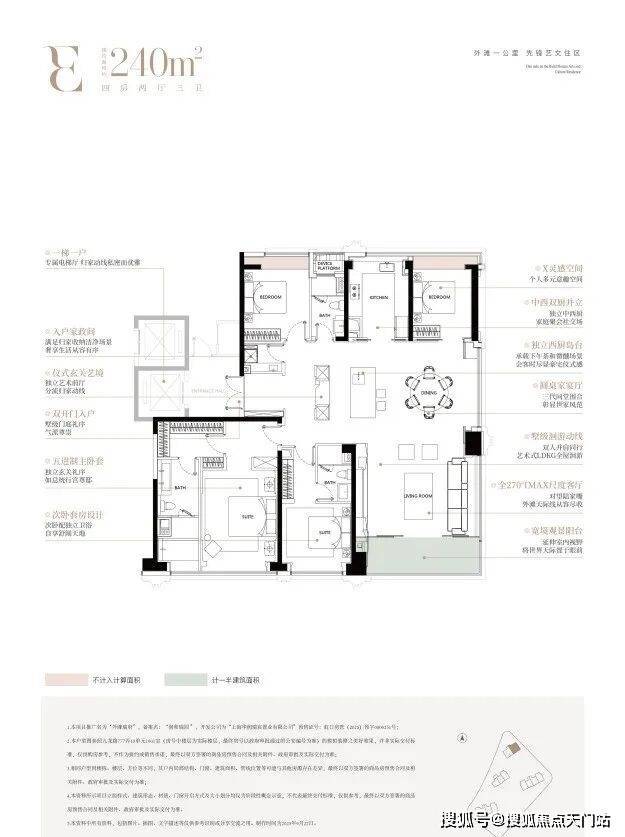 约240㎡户型作为当下的王牌和流量王,从入户礼序到空间格局,处处彰显顶奢气场,兼顾家庭居住与社交排场。