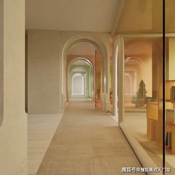设计团队更将连廊与花园景观深度融合,打造成一条沉浸式“线性美术馆”。优雅拱形吊顶、考究形制廊柱,搭配两侧艺术景致,让每一次归家,都成为一场漫步艺术的仪式体验。