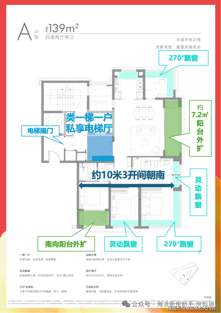 为了突出无遮挡的景观,更打造双南向阳台设计,使采光和视野更为优越。