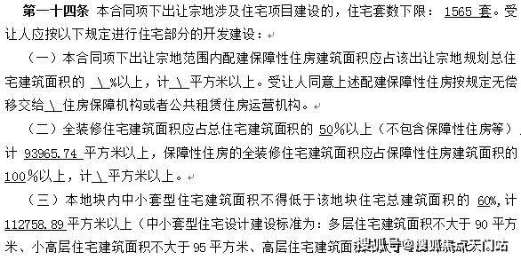 根据项目建设需求: 地块规划住宅下限1565套, 地块要求一半全 装修,中小户型比例为60%以上,装修集采标准为2500元/平。