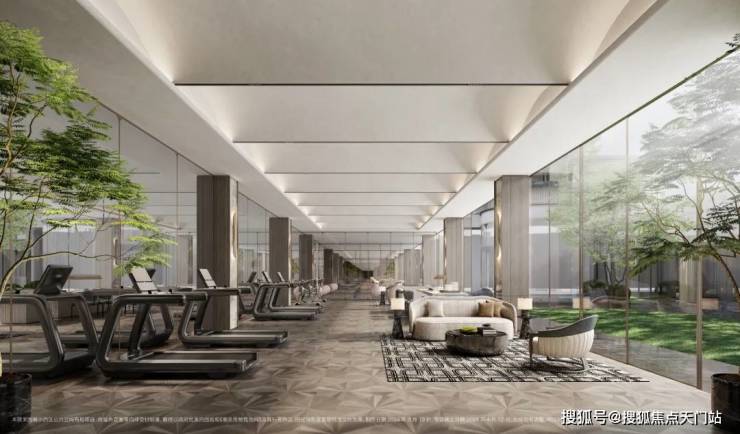 3、搭载大落地窗环模设计的健身房, 在欣赏窗外景色的同时,高端的健身器材,丰富的健身配套,都可以满足业主日常的健康所需。